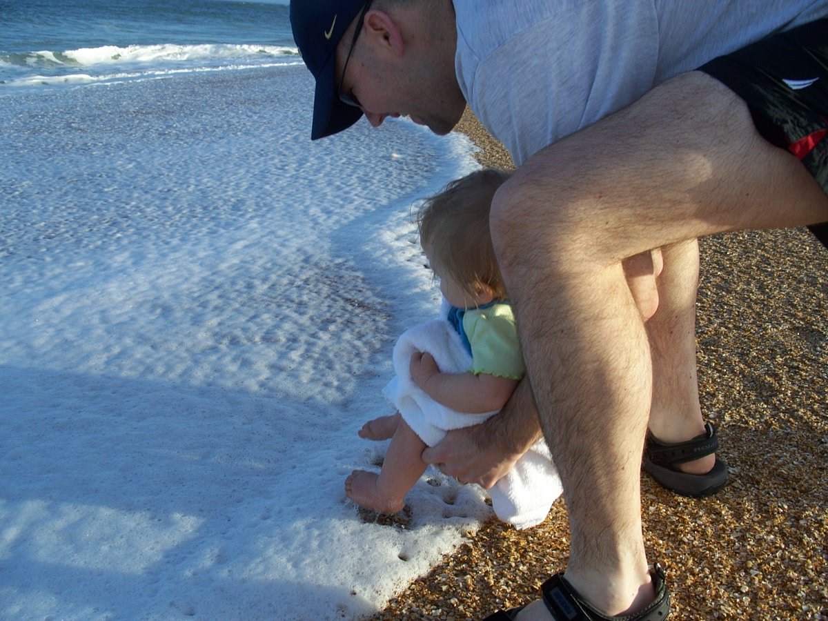We, being the smart, contientious parents that we are managed to make the youngest cry by sticking her feet in the water and managed to make the oldest lose her footing in the rip tides that were creating those righteous waves. Reagan loved it though and we had a hard time getting her to step back from the water.