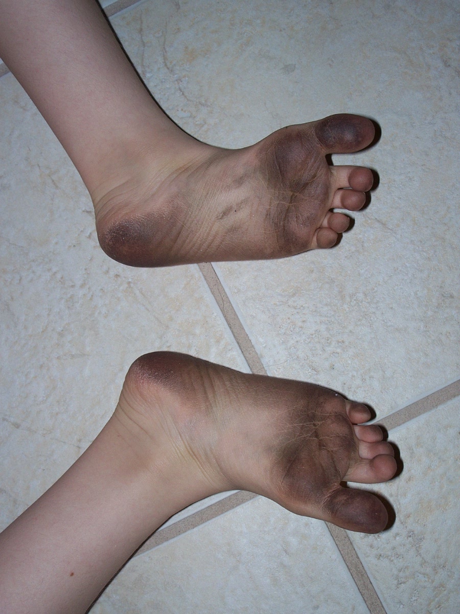 Eeeew!!! How many layers of skin did you have to scrub off Reagan to get those feet clean? Those were really nasty ,,, but shows she has a good arch.
