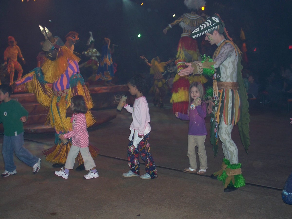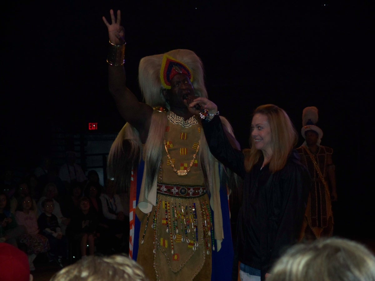 Near the end of the show they pulled out a couple of kids to shake African rattles and dance around with the actors. They let Reagan be a part of it and she had a lot of fun dancing around. We were proud of her to volunteer, because until now she’s been shy about volunteering.