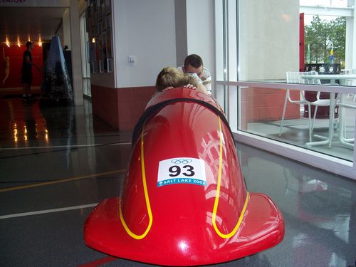 (we would not be good bobsledders…notice the horrible ducking stance)