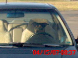 This was taken with my old cell phone so the pics pretty small. That’s a dog. In a car. Behind the steering wheel.