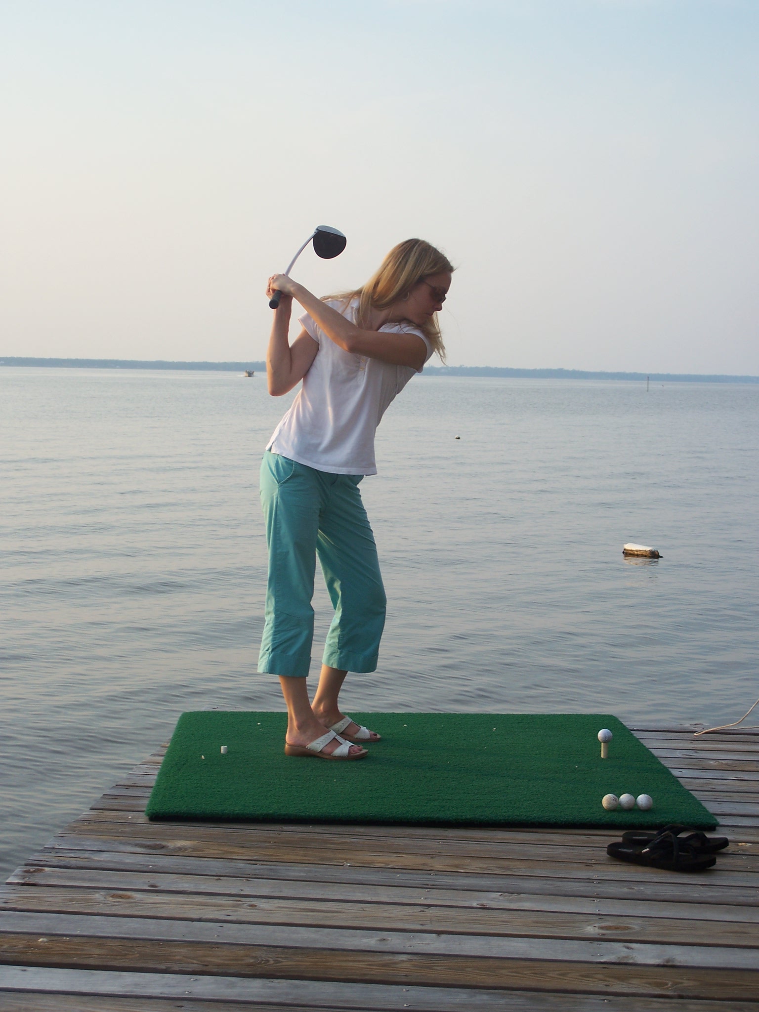 No critiquing the stance please. How fun is that–to hit balls into the Bay!