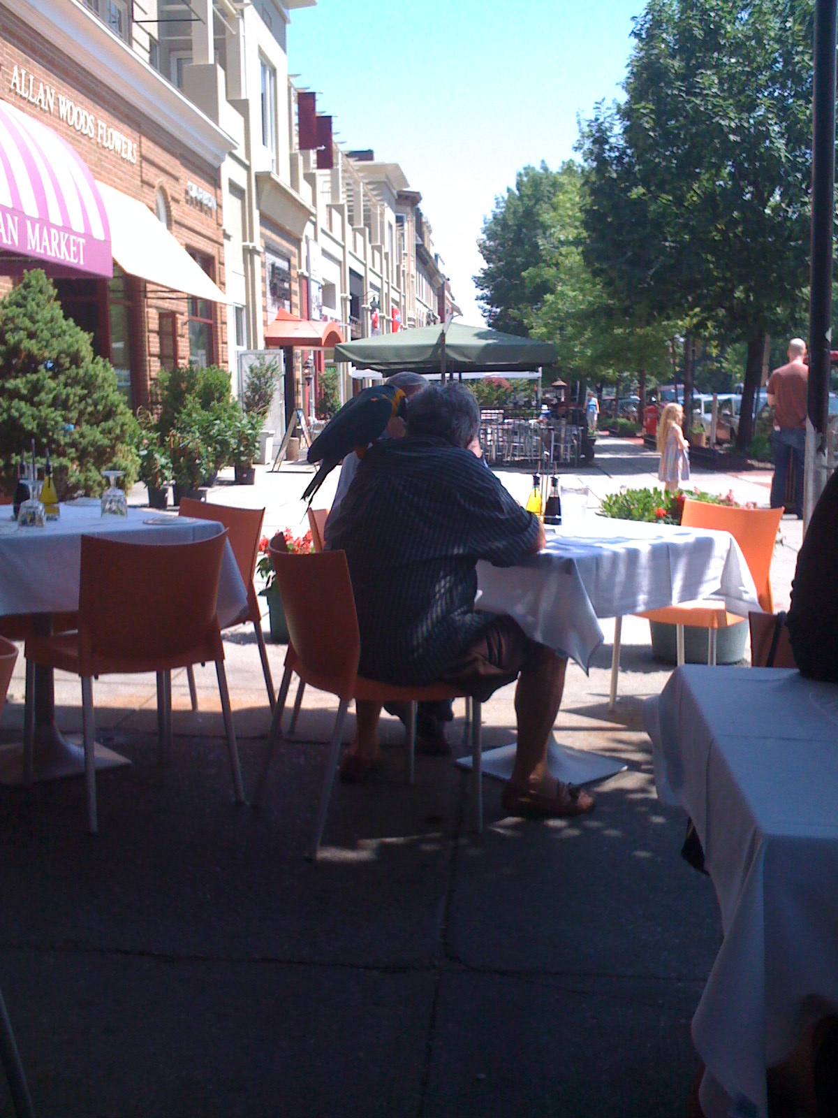 Later in the day we ate lunch at an Italian café where a parrot was sitting on a chair as free as, well, a regular bird.