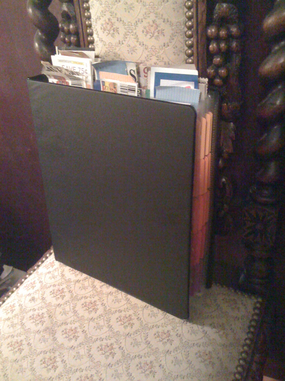 So, I clip every coupon and put them into piles as I clip. Once all the clipping is done I then put the coupons into the binder. WHILE I’m doing this I am also checking the expiration dates of the coupons already in there. If my shopping day is on a Monday then I’ll pull all the coupons that will expire up to the Sunday before that. I put the coupons that are near expiration into a clear zip-locky pencil case type thing.