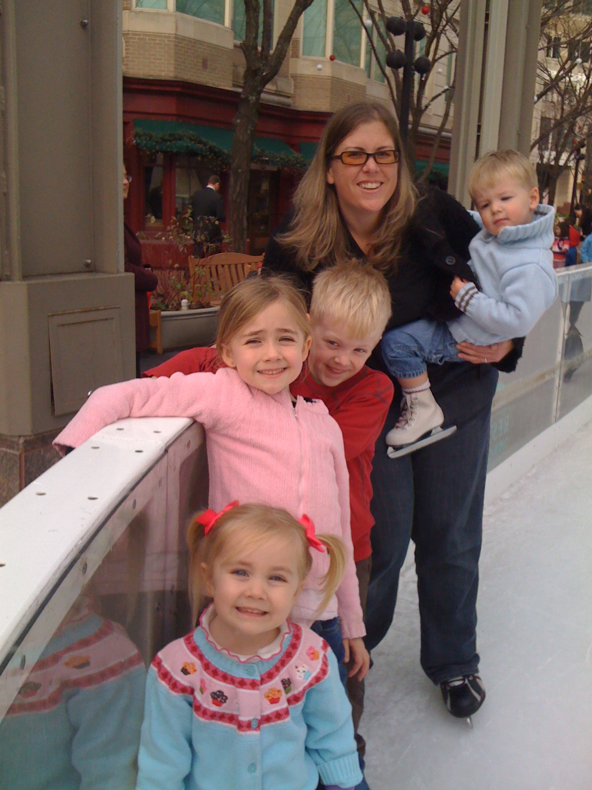 The kids who were too big to hang on mom’s hips had to venture out and try it on their own. And lo and behold, they both learned to skate without holding onto the rail! I think this was Eli’s first time. Reagan’s 7th birthday part was at an ice skating rink, but this is the first time she got off the wall by herself. They were good motivators for each other. We were both proud mamas.