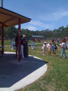 Our city has a neighborhood weekend where all the various neighborhoods in the city have their own get togethers to get the neighbors together. Seeing as how it was a gorgeous day, and seeing as how we signed dear ol’ hubby up to flip burgers and hotdogs so he was expected to be there, we trotted down to our very own Neighborhood Day.