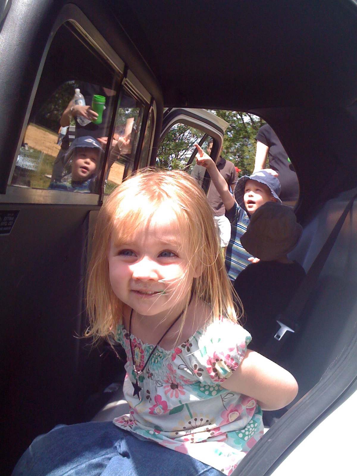 Exhibit F: A local cop drove his car up on the grass of the field we were assembled on and opened up the car for the kids to climb around.