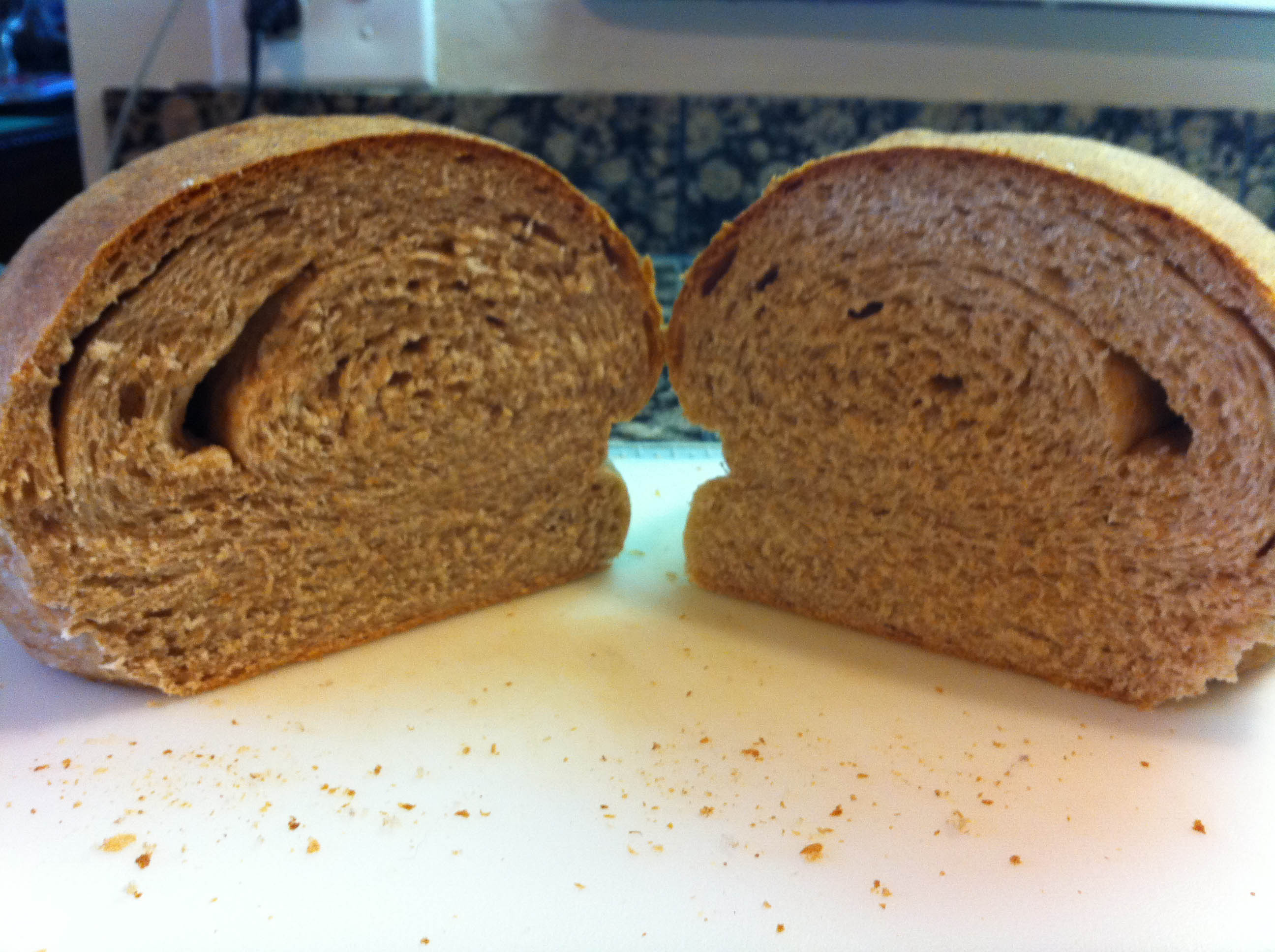 I also realized how swirl breads are made after I sliced into my bread. I didn’t pinch mine enough when I rolled it up.