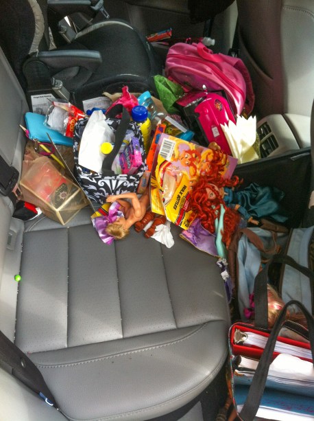 LOL. That is exactly how my back seat looks when I’m traveling with my daughter. š