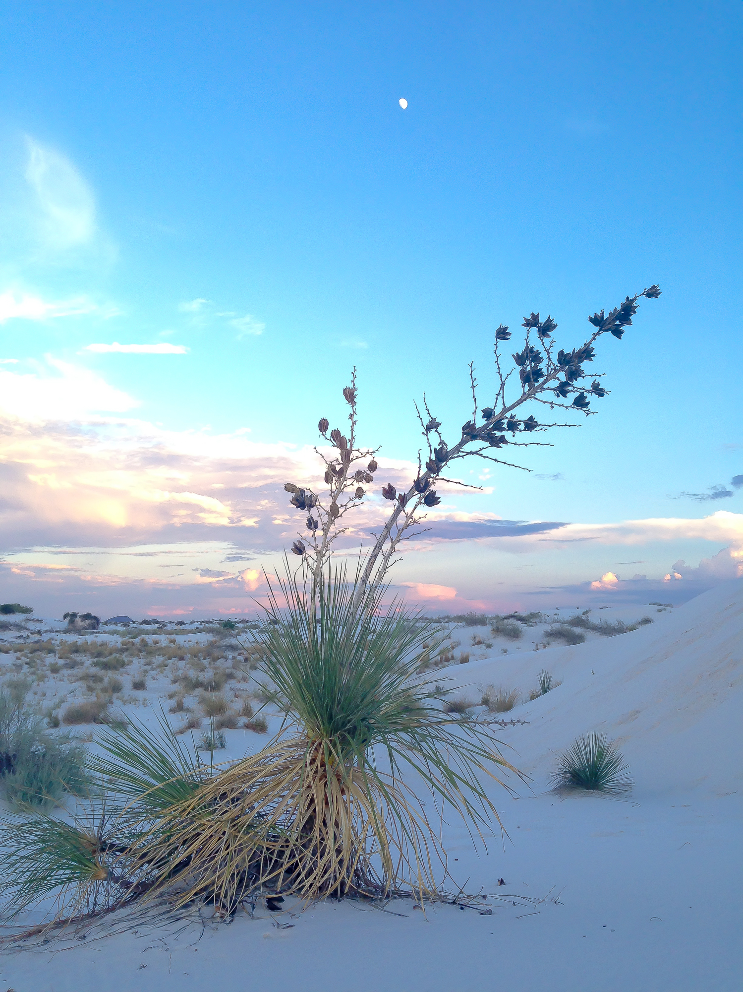 Our goal was to stay in White Sands until after dark so we could do some good star gazing. White Sands National Park is on or adjacent to White Sands Missile Range, and they must be doing testing throughout the night because everyone had to be out of the park by 9pm. We’re not too disappointed though, because I think we’ll do some good stargazing in Arizona. . . if the super moon isn’t putting off too much light. Here’s a link to an article about the Supermoon and the Perseid Meteor shower that will be happening almost simultaneously in a few days.