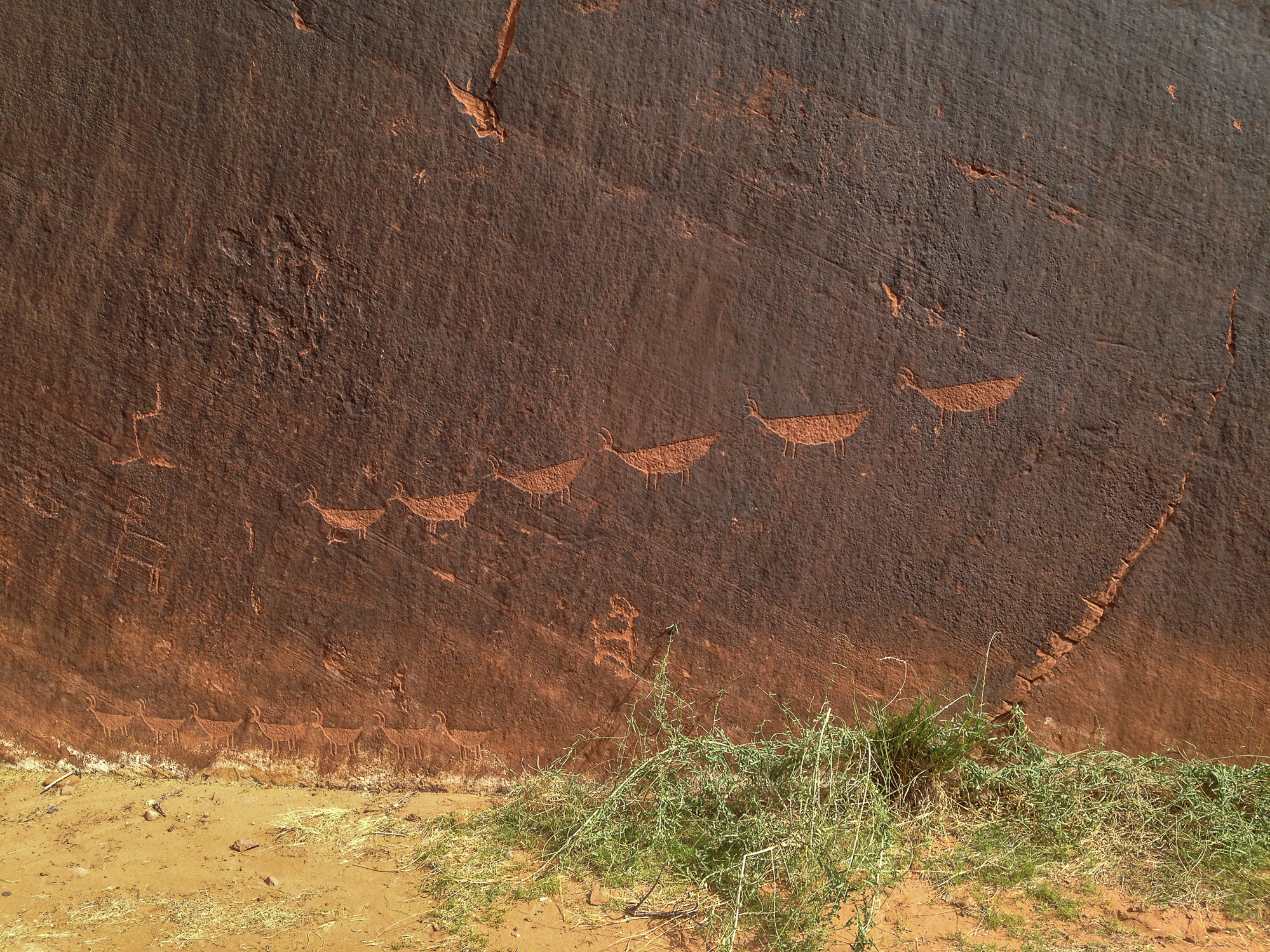 We took a river raft cruise on the Colorado River in Glen Canyon. It starts at the Glen Canyon Dam, goes around Horseshoe Bend and then back. On the way we stopped at a beach where the brave of heart could jump in the water. A cool 48 degrees! The water comes out of the dam from the bottom of Lake Powell, which means it is always cold! When you walk the path above the beach you come to petroglyphs left by ancient Native Americans. So cool!